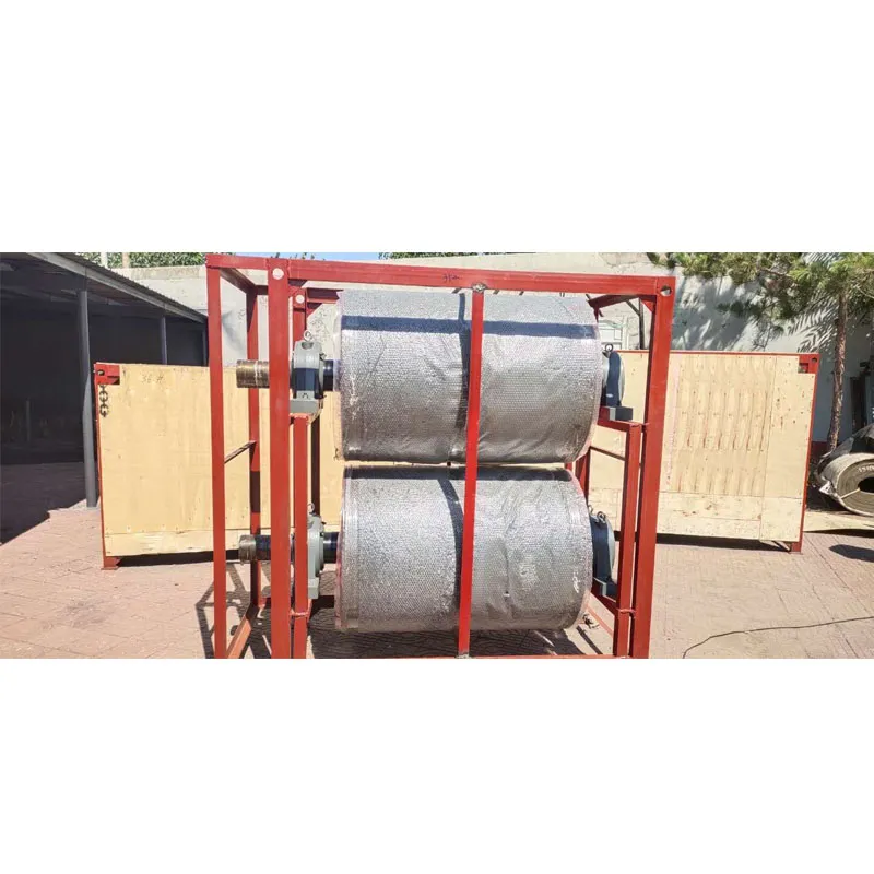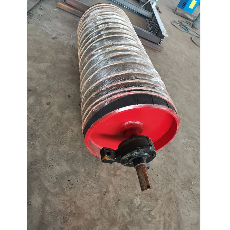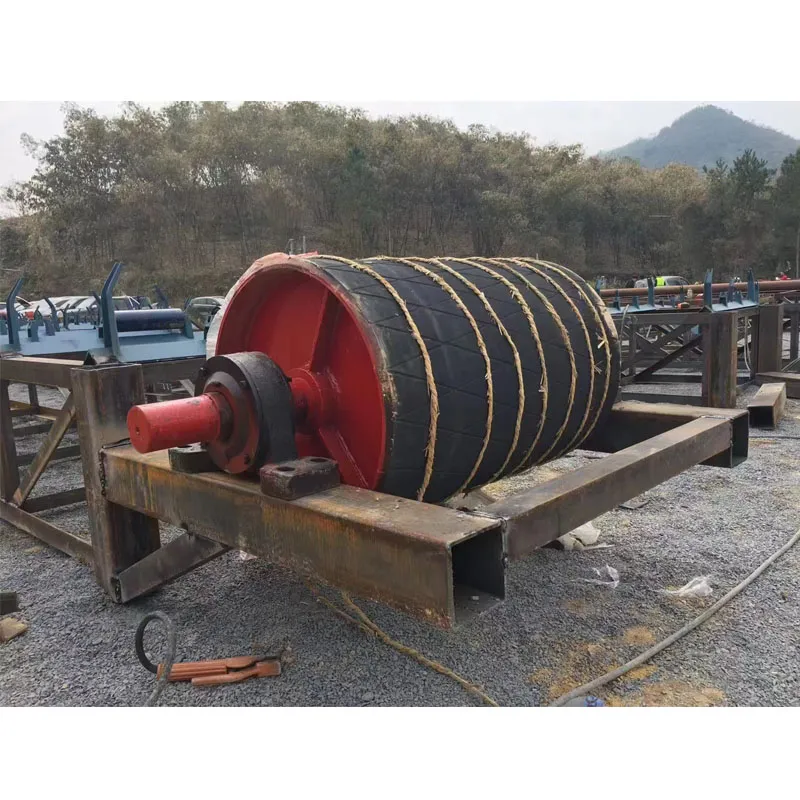 The drive drum is a component of a conveyor that transmits power. The surface of the transmission drum has exposed smooth steel surface, with herringbone and diamond patterned rubber coating. Bare bare steel surface can be used for low power, low bandwidth, and dry environments. The herringbone pattern adhesive surface has a high friction coefficient, good anti slip and drainage properties, but has directionality. Diamond shaped adhesive surface is used for conveyors that operate in both directions.